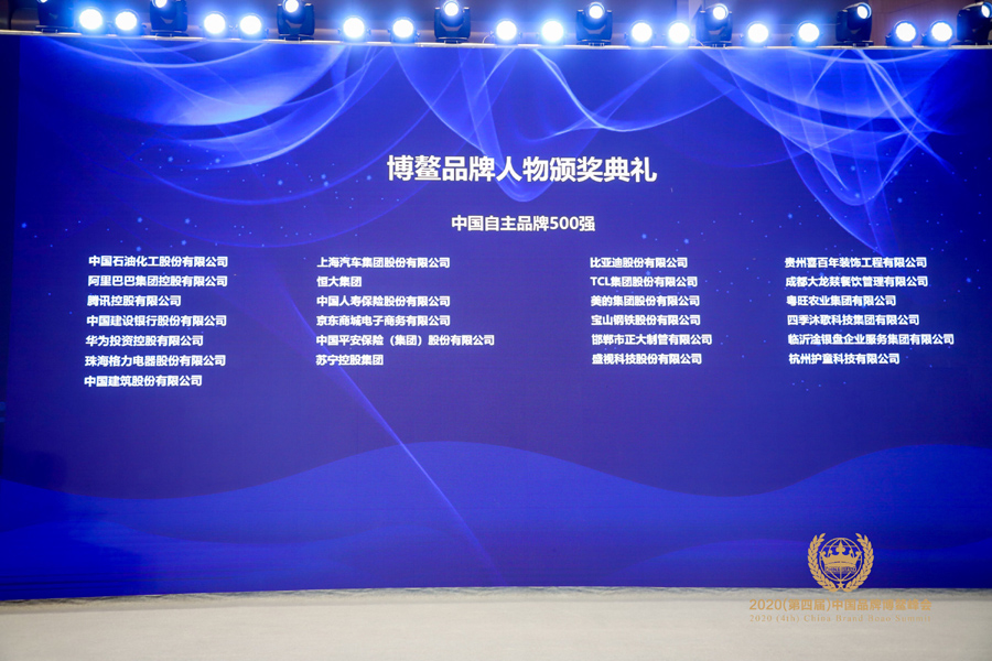 在此次中国品牌博鳌峰会上,中国石油化工股份有限公司、中国建行股份有限公司、宝山钢铁股份有限公司、阿里巴巴集团控股有限公司、华为投资控股有限公司、珠海格力电器股份有限公司、恒大集团、比亚迪股份有限公司等企业入围中国自主品牌500强,马云、任正菲、董明珠、郭恩元等荣获中国新时代十大品牌人物称号,