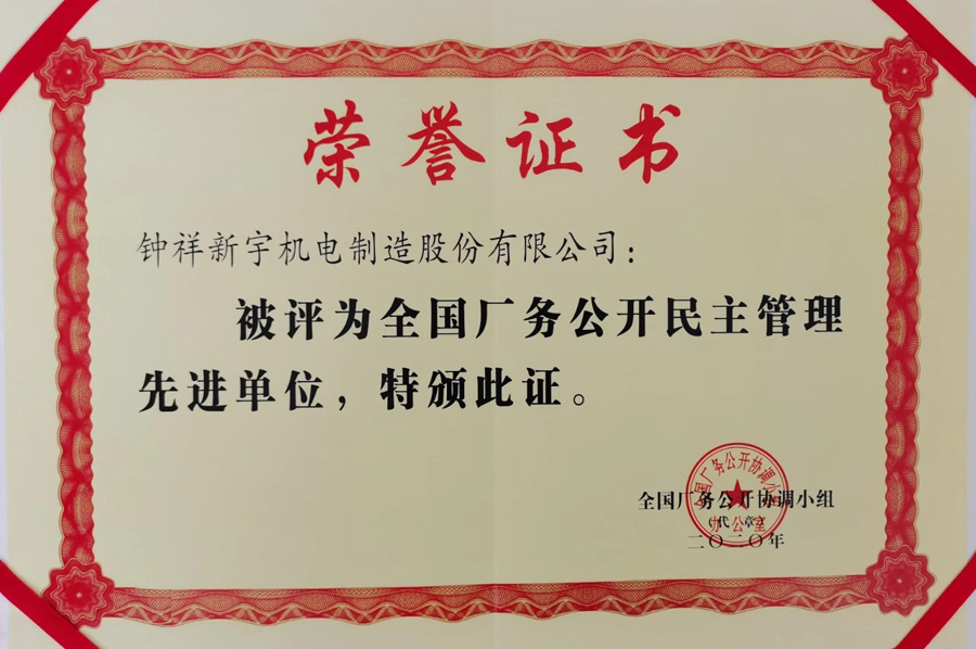 全国厂务公开民主管理先进单位每三年表彰一次,湖北省今年共计有15家企业荣获该荣誉称号,钟祥头号玩家官网登录入口机电制造股份有限公司作为 湖北省唯一的一家中小型民营制造企业榜上有名。