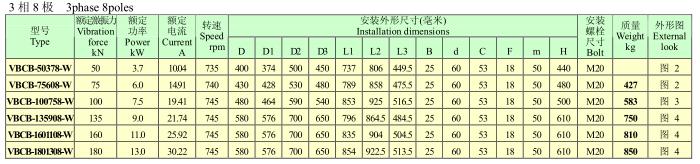 VBCB系列三相异步振动电机是我公司自主开发的新产品,拥有自主知识产权,受国家法律保护。与普通振动电机相比,它省去了振动机械复杂的电机底板 VBCB系列振动电机结构,电机直接安装在振动机械的侧板上,可使振动机械实现圆运动或直线运动,同时可使振动机械重量减轻,机体刚度要求减小,减少振动机械的能耗,安装维护方便、单机激振力大、寿命长(达10000小时)。它广泛运用于电力、建材、煤炭、化工、矿山、冶金、轻工、铸造等行业,主要适用于大型筛分设备,由于其独特的特点,可逐步替代轴偏心、块偏心等其它类型的激振源,同时为我国大型振动机械提供了新型、可靠的激振源。