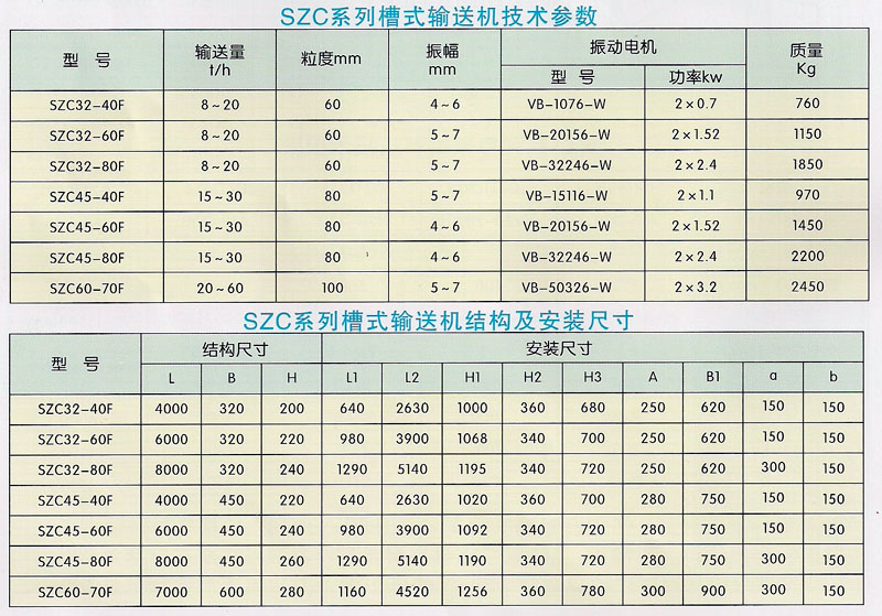 SZC系列槽式振动输送机是以两台振动电机为激振源的新型振动输送设备。机器在远超共振状态下工作,工作时不会使槽体振幅出现明显增大或减小现象,振幅较稳定。同时,可以调节激振力,进而调节输送量。可广泛用于冶金、化工、建材、粮食、轻工等行业。可以将各种块状、颗粒状物料连续、均匀地输送到受料装置中。