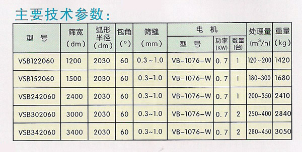 VSB型振动弧形筛用途: 振动弧形筛主要用于细粒级煤泥的脱介、脱水,振动弧形筛与煤泥离开心机配套使用,可用于粗煤泥的回收。