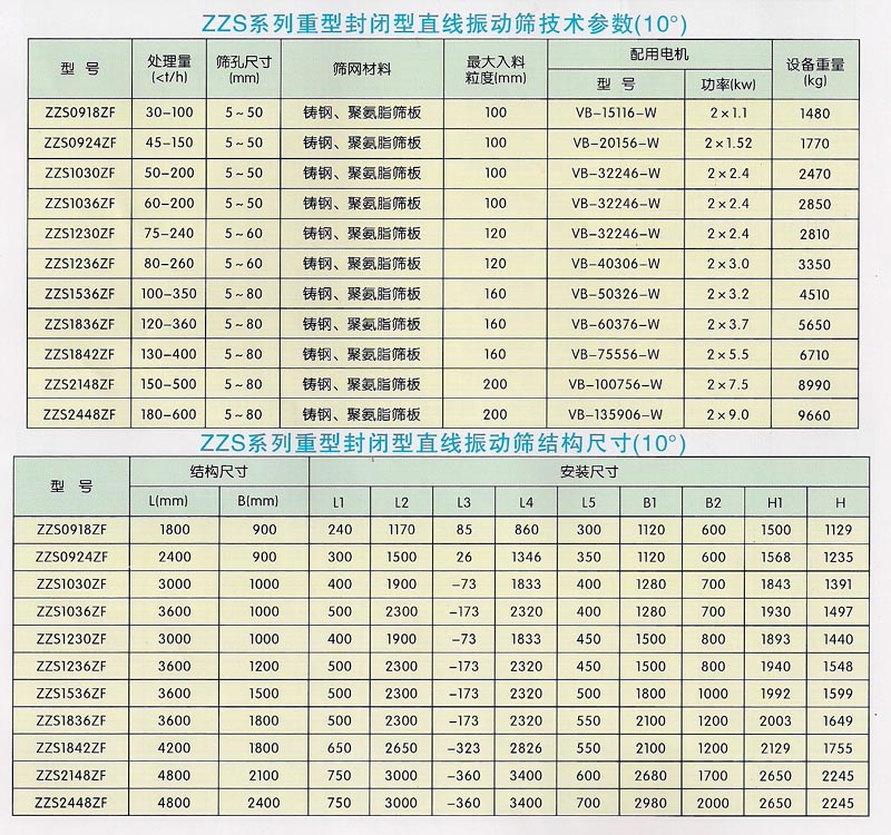 ZZS系列直线振动筛是一种以振动电机为激振源的新型振动筛分设备,开发有轻型筛和重型高效筛两大系列,其中轻型筛通常是水平安装,且多采用编织筛网,广泛应用于冶金、矿山、煤炭、化工、建材、耐火、食品加工等各行业对中、小颗粒物料及各种粉状物料的分级、脱水、脱介;而重型高效筛一般采用5°-15°倾角安装,且多采用筛板,广泛应用于冶金、矿山、煤炭、化工、建材、耐火等各行各业对大、中颗粒物料的分级。